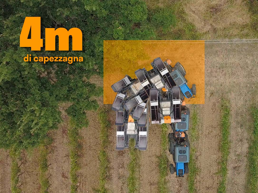 Le perdite occulte vengono azzerate: solo il 30% dell’uva vendemmiata passa sotto gli aspiratori. Questo garantisce un 5% di raccolto in più nelle benne.