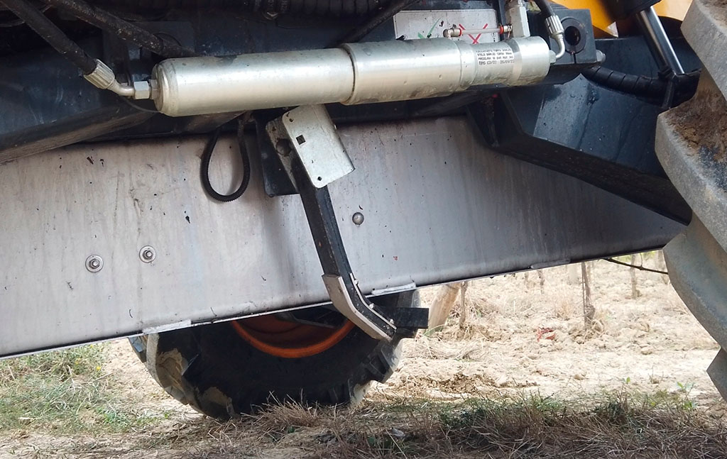 I palpatori di rilevamento del terreno, posti all’esterno dei convogliatori, permettono alla macchina di seguire l’andamento del suolo in maniera costante. Questo garantisce il corretto scuotimento sulla facia di produzione della vigna.